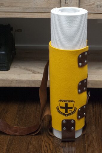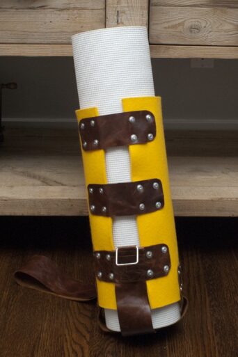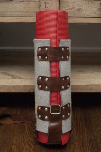 The most wanted bag in town! This unisex mat holster is one of a kind and 100% handmade in San Francisco. Designed from felted merino wool and recycled leather for the stylish, discriminating and eco-conscious gym aficionado.